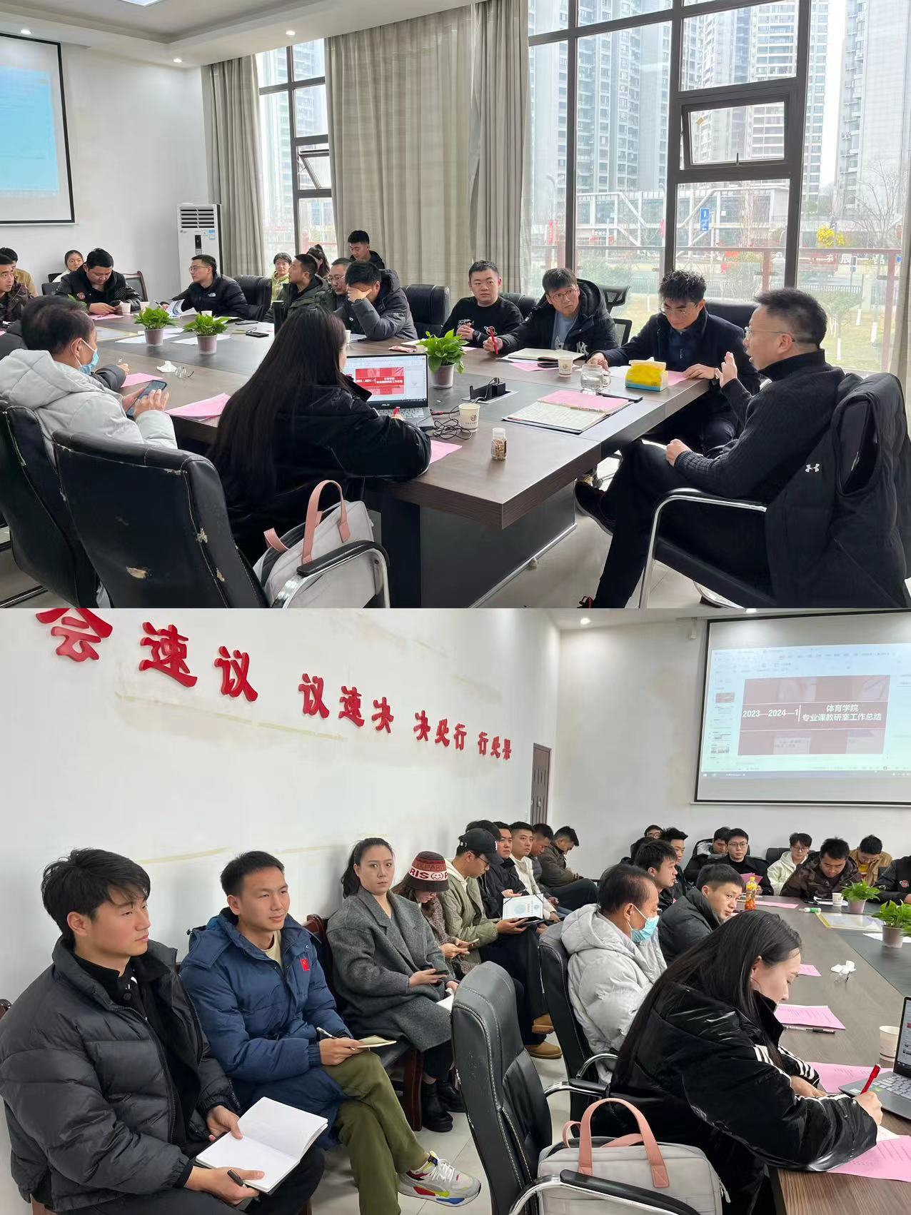 2024年1月15日,在梓潼校区体育学院办公室召开了体育学院年终总结会,本次会议主持人:体育学院院长胥烈勋,参会人员体育学院全体教职员工。