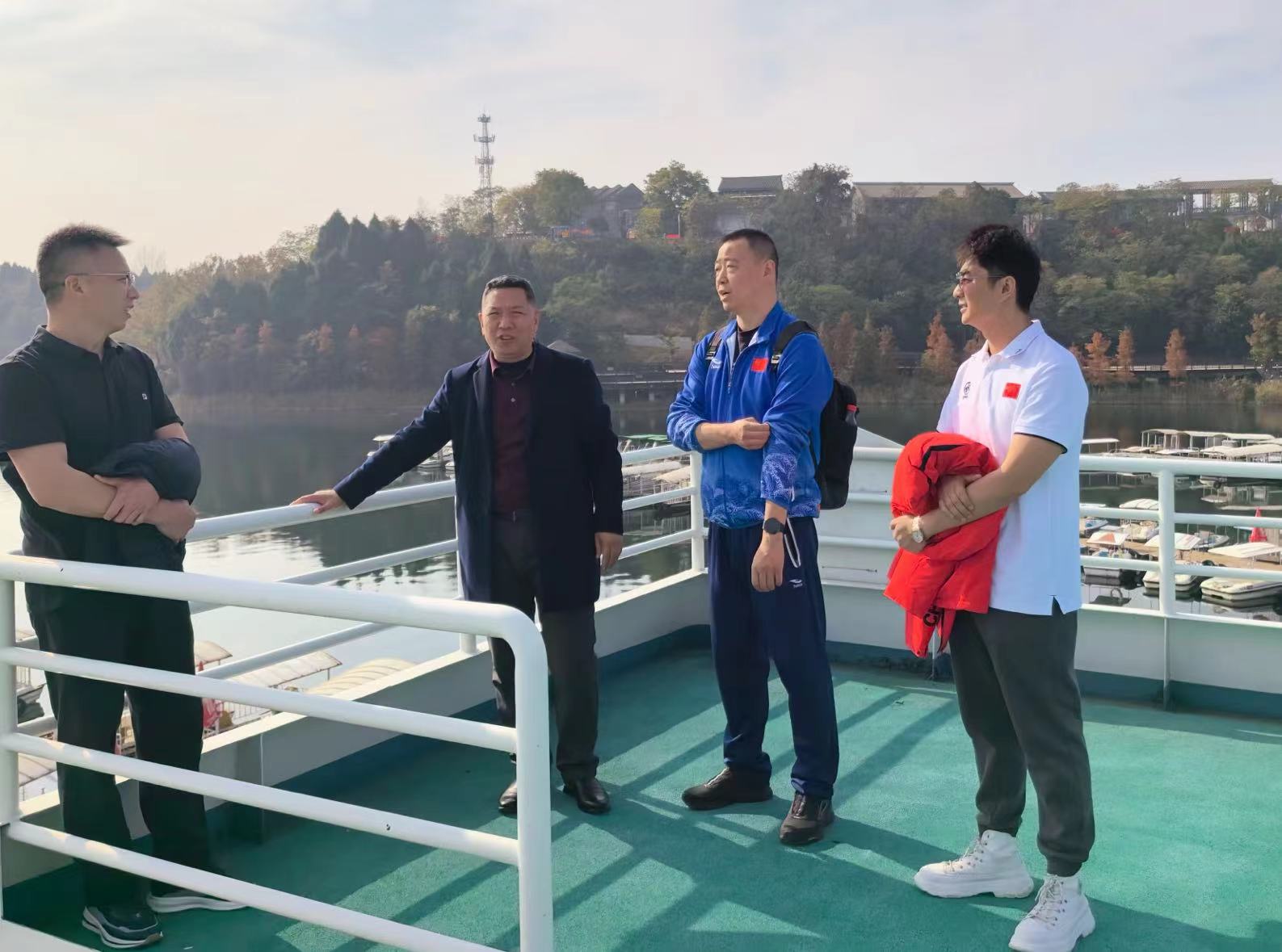 为更好的发展体育学院休闲体育水上项目的开展,11月22日,四川省游泳协会副主席秘书长于晓舟、体育学院院长胥烈勋、副院长黄韬、以及体育学院水上负责教师一同前往仙海考察,与仙海好运公司就水上项目实训中心进行交流。