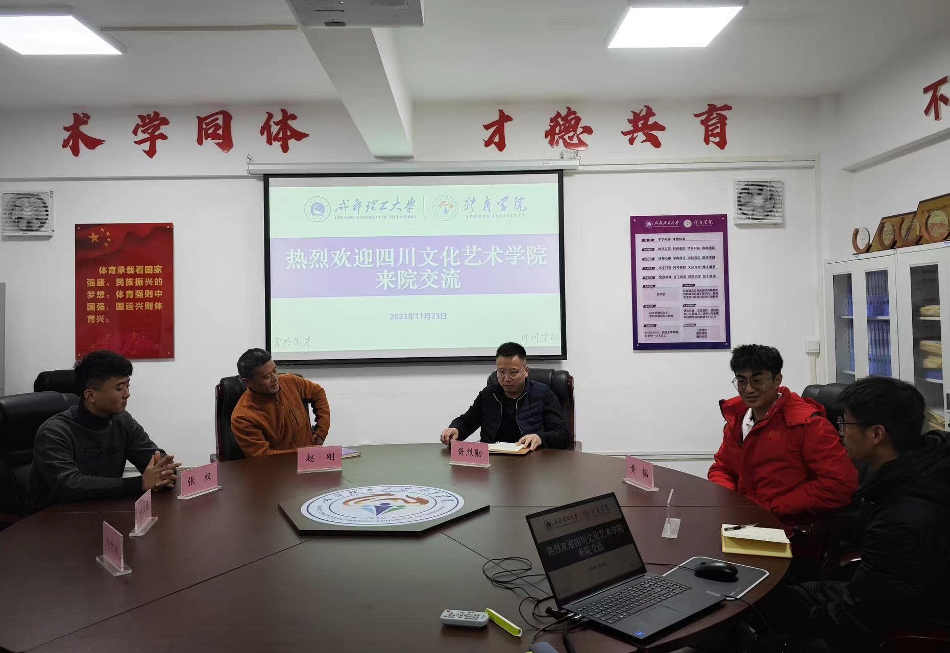 2023年11月23日,四川文化艺术学院体育学院胥院长、黄院长和李主任以及三名专职教师张权、杨青林和付江燕共6人赴四川旅游学院和成都理工大学两所高校进行学习、交流,在考察期间,得到了学校领导的大力支持和帮助,以及各高校的热情接待和配合,圆满完成了考察交流任务。