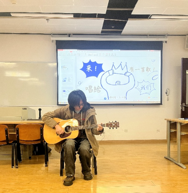 活动开始,王子涵同学的一首动听歌曲拉开序幕,婉转旋律带动现场氛围,为川文艺师生送上最真挚的欢迎。随后开展“大风吹”“同心圆”等趣味暖身游戏,轻快指令与欢声笑语交织,同学们打破陌生与紧张,在互动中快速熟络,现场暖意融融。