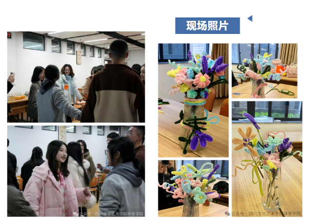 康宇辰、王勇智、李君三位老师也送上暖心寄语,鼓励大家敞开心扉、畅所欲言。创意满满的“扭棒棒花+制作插花”环节紧随其后,同学们分工协作、巧思迸发,彩色棒棒花在指尖缠绕成形,临近饭点还意犹未尽。