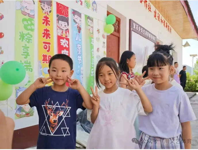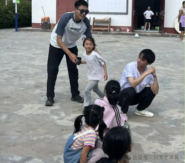体育学院团总支组织青年志愿者走进宝石乡天生村小学,为当地儿童开展关爱活动。